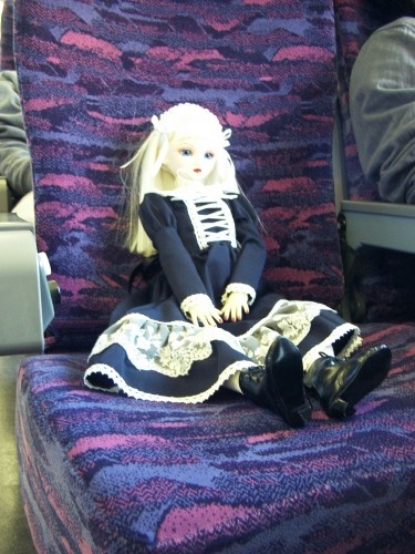 そうしたら運転手のおじさんが最初はびっくりしてた。お人形がのぞいたらびっくりするわよね
